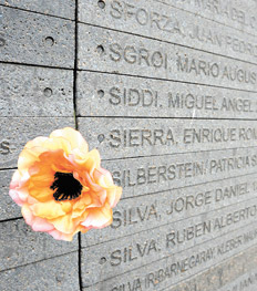 nombres de los desaparecidos, diversas esculturas alusivas y un centro de